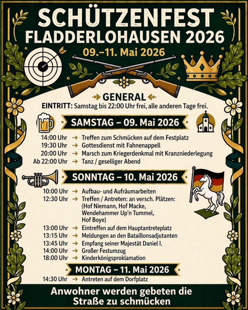 Hier findest du alles, was unseren Verein ausmacht: aktuelle Termine, Neuigkeiten aus dem Vereinsleben, Rückblicke auf legendäre Feste und natürlich alles rund ums Schießen.